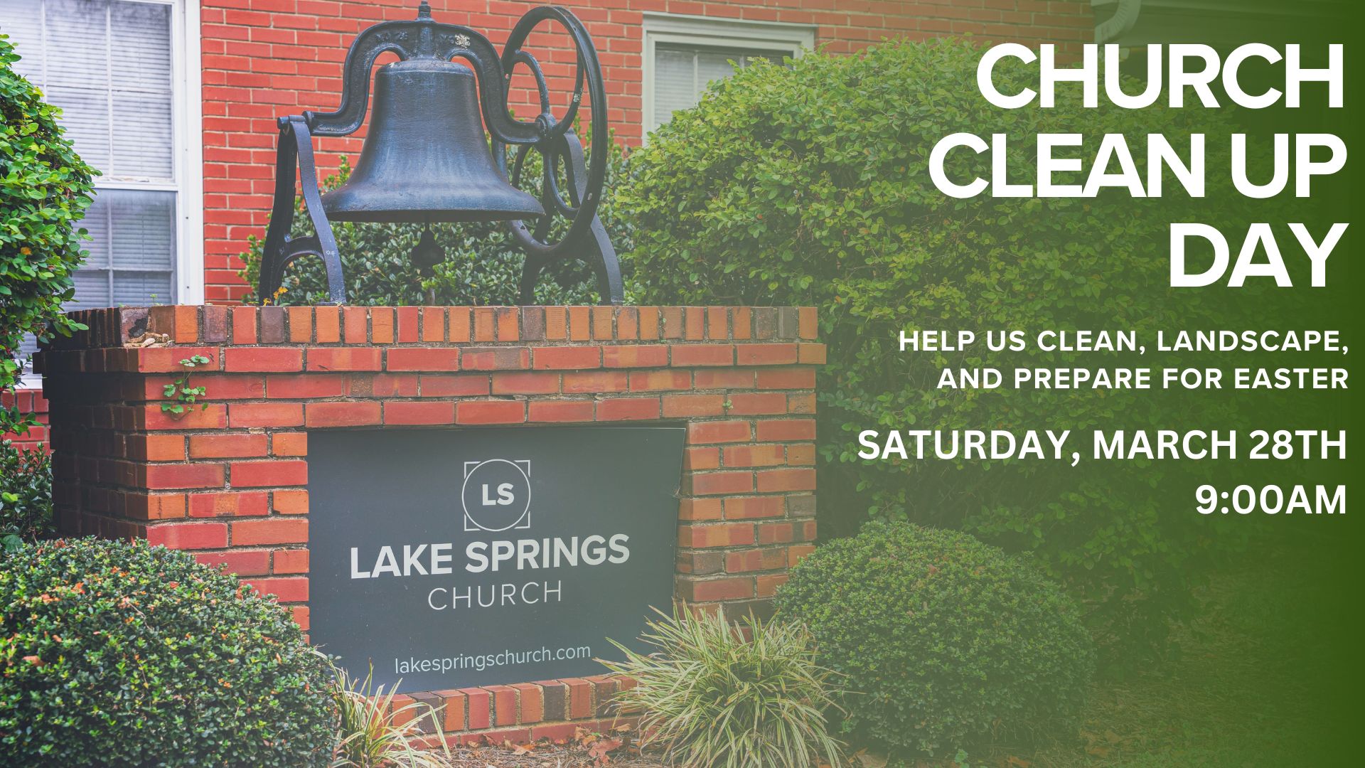 Help us as we clean, landscape, and prepare for Easter.